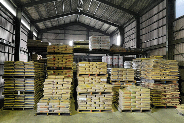 在庫商品や仕入れた商材を、左官業者様や施工業者様のもとへ迅速にお届けいたします。リーズナブルな価格でご提供が可能な石材の直輸入商品や、弊社オリジナルの洗い出し用骨材なども、数多く在庫しております。